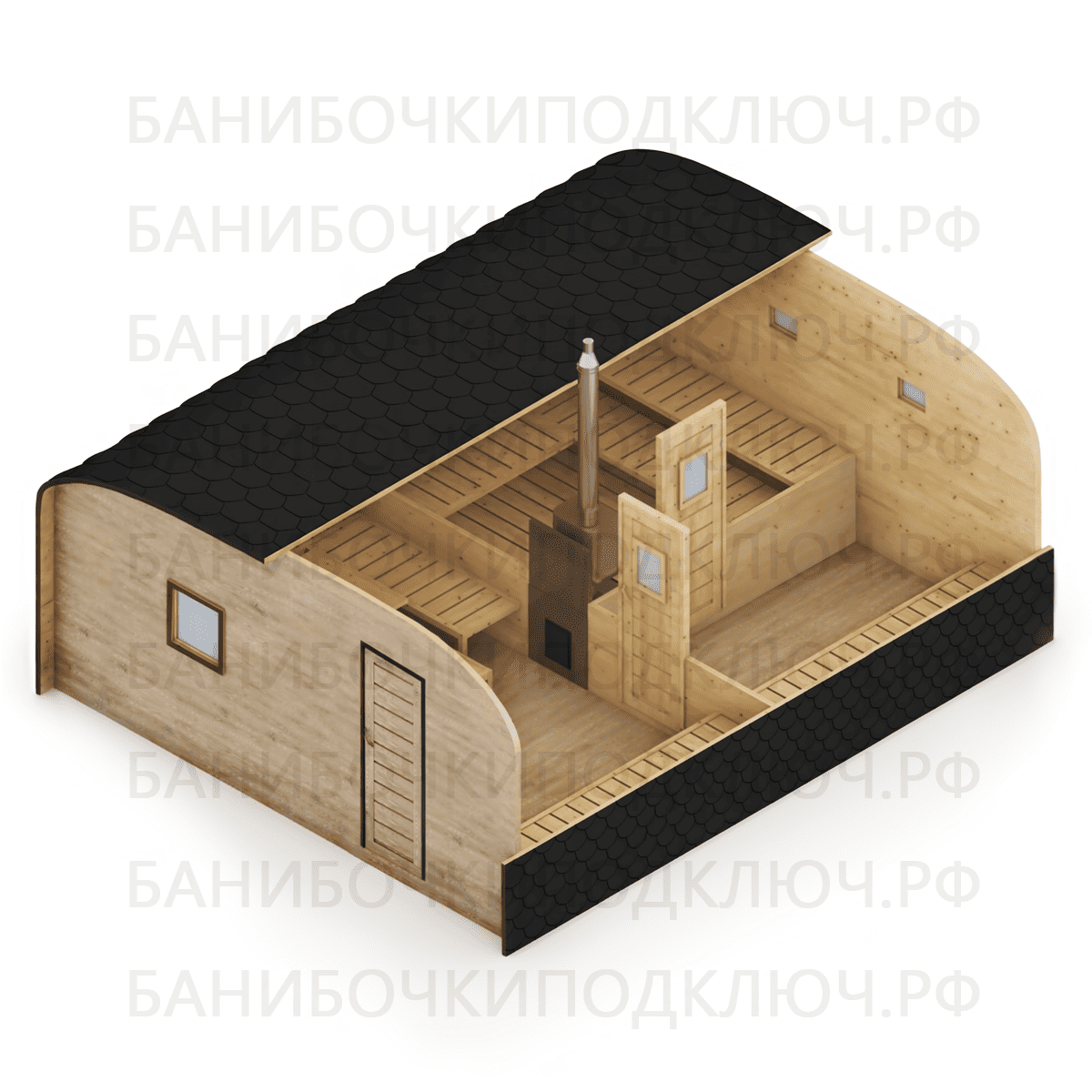 Баня парус 6 x 2,3 м в комплектации "ЛЮКС"